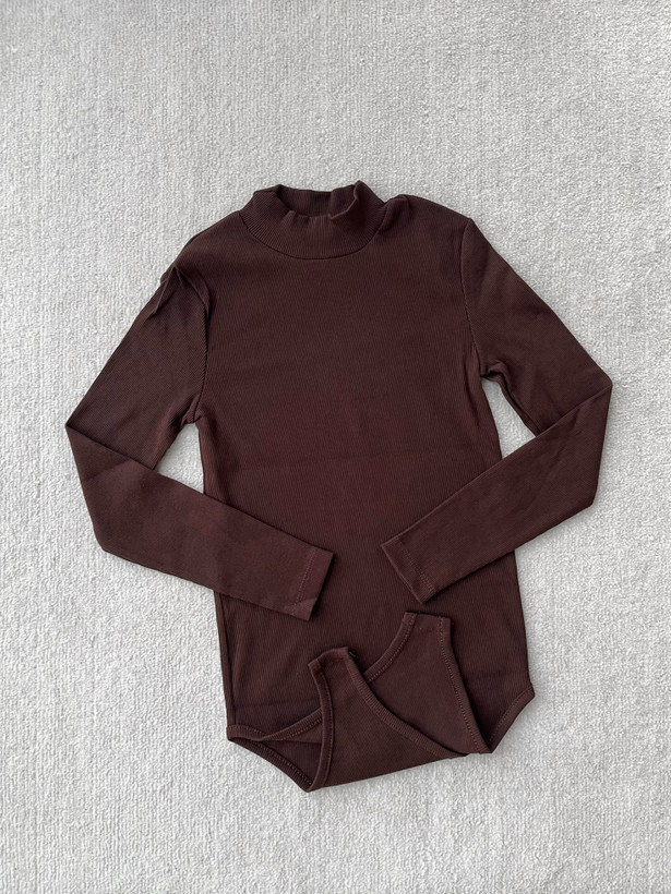 بادی یقه اسکی آستین بلند کبریتی قهوه ای